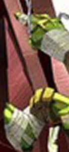 Now the weapons. Leo's swords don't look like "ninjatos," which are the swords Leonardo should have and has had in the other series. Raphael's sais, much like the other series are designed as a sharp thin weapon, I don't care for how his right hand is holding the sai. I know a lot of people seem to like him holding them that way, but it's not right and could be painful in a fight against a sword. Don with his bo staff looks great. Than there's Mike. Where are the Chucks?! In this picture Mike is holding kusarigama and not Chucks in this picture!In the past, Mike has been brought through one challenge after another with his weapons. The nunchucks were not allowed in many countries. So, in the original cartoon series to save the show from being edited more than it already had to be, the chucks were removed giving him his grappling hook. This was a big change to Turtle fans to realize that one of the main weapons that could still be found with the toys was taken out of the series. Than the Next Mutation came around with the tonfas as Mike's weapon. This was another disappointment to Turtle fans, and he barely even used his new weapon in the series. Now we're staring at the kusarigama in Mike's hands. I don't know about anyone else, but this is not going over well with me. Now Alex, one of the TMNT animators for this new series, has given us the idea not to worry about the weapons, "that’s just one of many images that was used for the composite." I will take his word on this and hope to see the chucks in Mike's hand for this new series.