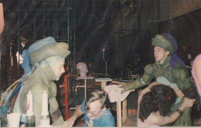 CC: Can you tell us a bit about your job as a costume dresser on the first TMNT movie? Were you assigned to a certain character and what time would you have to arrive for work to start getting them in costume?