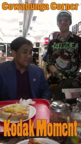 I got hundreds to thousands of photos through my life. A lot of which would match up to stories here on Cowabunga Corner, but for one reason or another they are not chosen. This does not mean that these photos are not worth sharing and do not hold stories of their own. I would like to keep sharing what I can here on the site, so whenever I can I will share a photo and a story to go along with the photo. If it’s a part of events that have been shared here, we will link back to the stories of the events themselves as well. Hope everyone enjoys. Today’s photo is at the Famous Roio’s in New York City.