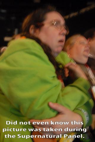 When the panel that I did all this for started, things only got worse. The pain in my arm went from just being sharp and throbbing to intense shooting pain, going straight into my back. My right hand swelled up and things got so intense that it was hard to focus on the Supernatural panel. I had to fight to keep my eyes open because the pain racing through me was forcing me to close them. For many sections of the panel I had to keep my eyes closed. This was much like the time when the security guard in the front row a few years back was worried about me. Except this time the only people who showed any concern was Miki and our friend sitting on my left, Lisa and Kate. Despite the unrelenting pain, I stayed for the entire panel and even raised up a light over my head when it was time, which I explained in my convention review. However, once the panel was over I limped out of the room.