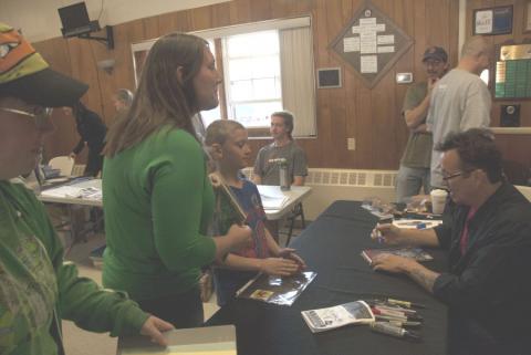 I started to talk to the fans around me. There was these two young boys that was totally excited for the Teenage Mutant Ninja Turtles stuff. I started to show them some of the things I brought to be autographed including Ernie Reyes Jr. script from Teenage Mutant Ninja Turtles II. I went to explain who Ernie was to these kids, and right after I mention he played Keno one of these kids said that he was “Donatello” in the first movie. I was in shock. He was so young to know such awesome trivia. I had a handful of autographed cards in my pocket incase I could get some of these signed by Kevin. So I grabbed out one of the cards signed by Ernie and gave it to the boy. Others noticed and said they wanted some, so I held TMNT trivia in the line for the kids to win free autographed cards from Adam Carl, Robbie Rist, Ernie Reyes Jr, and Barry Gordon. With easy questions like “What channel did April work for in the TMNT Movies?” and “Who created the Mousers?”. I called it after giving so many cards away as I want to be able to give most of these cards away online as we have been doing.